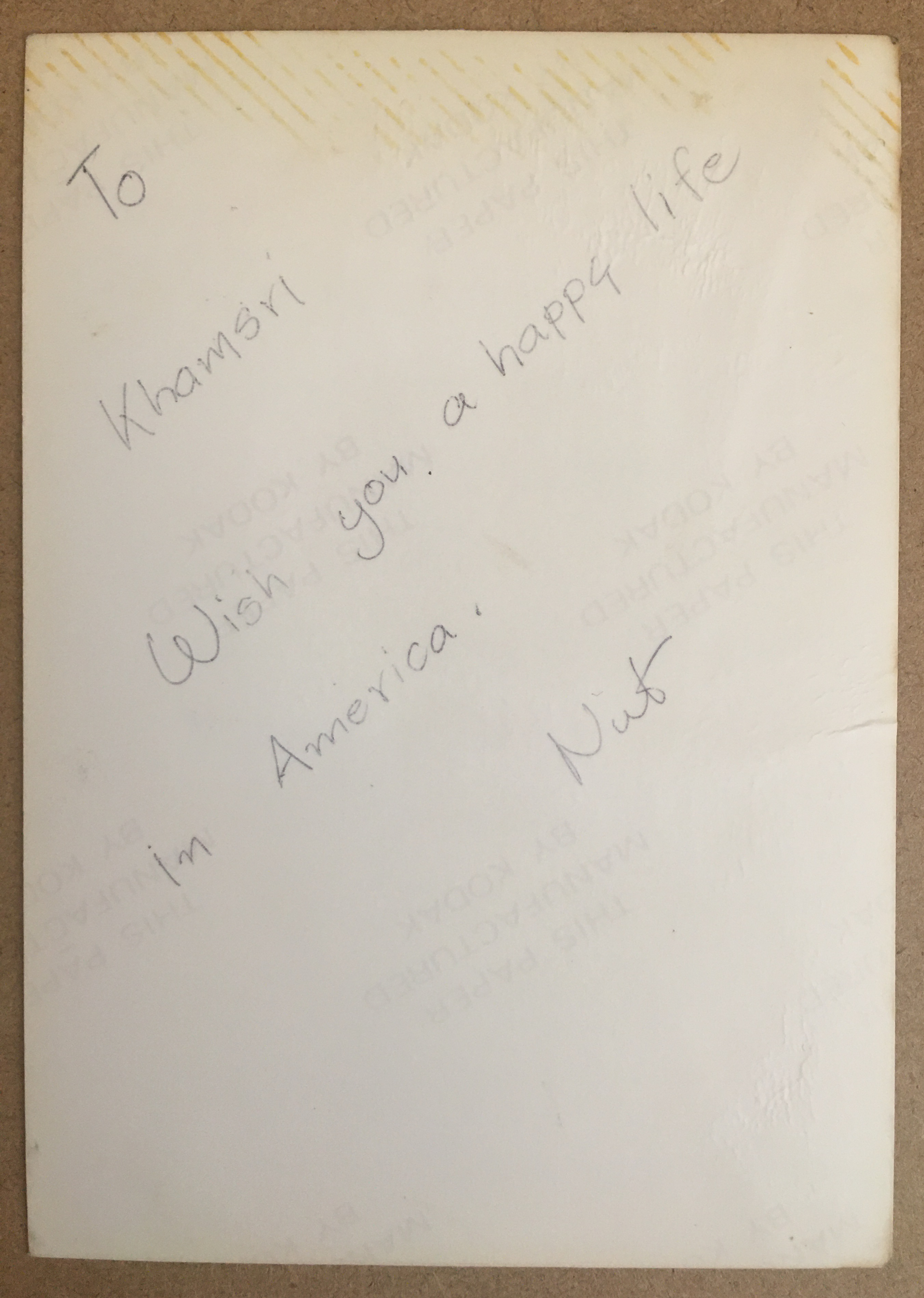 Mom, fourth from the left in the back row, in a refugee camp in Thailand. She is pregnant with my brother, Vinat, in this photo.